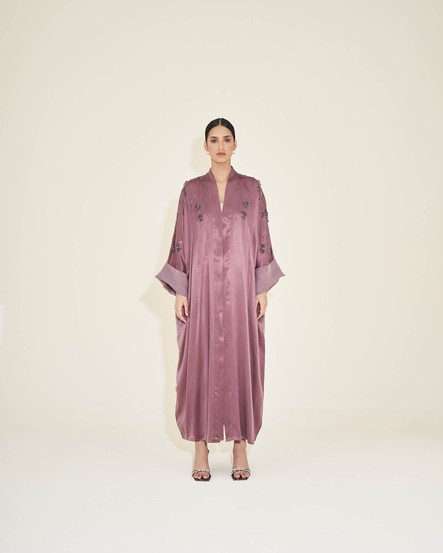 Previously known for their fluid shapes and minimal embroidery, this new Abaya Drop 6 collection by 1309 introduces more fitted silhouettes, enhanced embroidery, and precise attention to detail which can be predominantly seen on their tulle scarf, one of this season’s bestsellers. Patchwork embroidery is yet another experimental and exciting creation this collection introduces, attaching various shapes such as the sun and moon to make their ‘Sol’ and ‘Dusk’ abayas.