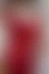 A slip dress with an asymmetric drape skirt in burnished Welsh red leather is finished with black scalloped lingerie lace detailing: another reference to vintage undergarments.