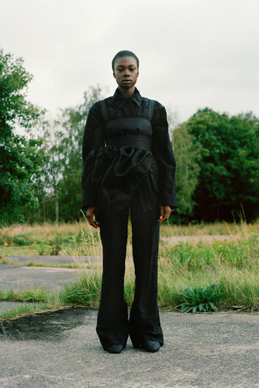 Drawing on the expertise of true craftsman, Cecilie continues her ongoing collaboration with Mackintosh, bringing a superfeminine approach to the masculine utilitarian function of the British heritage brand’s outerwear. For the first time, in partnership with Japanese heritage brand Chacoli, Cecilie has created a bag. The seemingly simple concept of a structural shell tote bag but crafted to withhold the test of time, functional and utilitarian the eponymous masculine contrast to the collection. New this season, after several col- laborations, Cecilie has created her own shoes, inspired by the outdoor mountaineering forms, embellished with signature fabric detailing and embroidered flower beading.