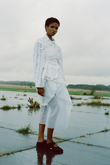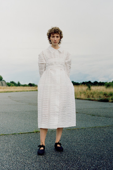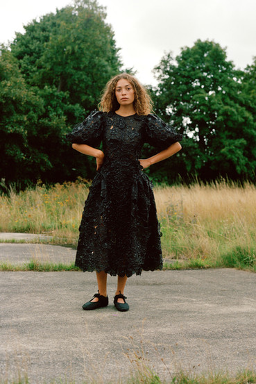 Cecilie Bahnsen ́s Spring Summer 2022 collection is a celebration of the love for craftsmanship and the duality of femininity. The most practiced and technically refined collection to date, brought to life through Cecilie ́s artistic collaboration -a sound installation composed by Okay Kaya and photo exhibition by Takashi Homma on view in Paris. The collection and artistic collaborations address the duality within us expressed through an exterior detachment and the gentleness in the sensuality of emotions, “To be both,” the ability to not “Be” only what we feel. The duality is present throughout the collection, film, and exhibition. The result is an emotional collection that celebrates Cecilie and the atelier ́s love for the work, featuring new techniques like the utterly beauti- ful camellia floral cutout-flowers fluttering on fabric, as if the petals were falling gently to the ground from a full bouquet.
