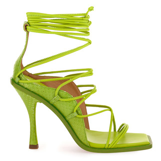 Fantasy also shapes the accessories. Sparkling fruit pendants, hearts and butterflies are crafted into jewellery, with handmade crowns. Whimsical leopard print heart bags are joined with lunch pail and cord styles, and mini hand-held bags that reveal another bag snap-fastened on top. Chunky boots and sandal platforms offset the collection’s softness.
