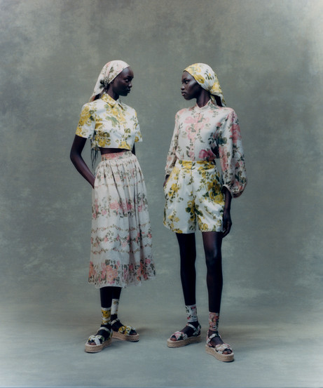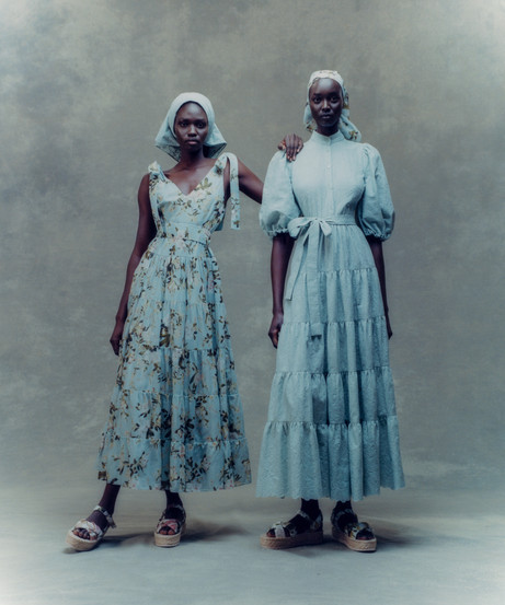The collection is comprised of relaxed silhouettes perfect for a summer escape; volume sleeve mid-length dresses in bold guipure lace sit alongside scallop-edged broderie anglaise sundresses, both exclusive fabrics for the brand. A vibrant seasonal colour palette of grass green, burnt yellow and mint merge with painterly Victorian botanical prints on high waisted bikinis and swimsuits.