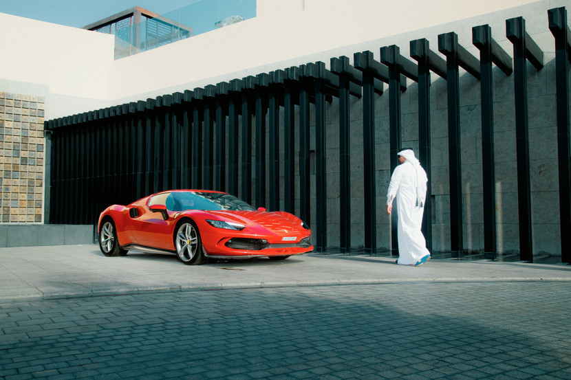 We took the latest addition from Maranello out for an editorial photoshoot at the entrance to the Hakkasan Doha in the gardens of the St Regis Hotel. Sitting behind the wheel of the all-new Ferrari GT was a mind-blowing experience for the Qatari car enthusiast Tariq Almusa, a blogger and car collector. The 296 GTB’s amazing looks and blistering performance mesmerized him.