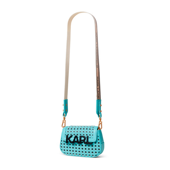 The accessories assortment has a few new groups that are in keeping with the season’s theme and detailing. The K/Punched group features the essential logo on a bias and in a sleek, perforated design, while the K/Woven Letters assortment implements Karl lettering and lightweight raffia to create a unique, summery feel in bright colorways. Signature styles such as the K/Seven and K/Autograph are respectively updated with a zebra print and crochet techniques that seamlessly circle back to the overall theme of LIFE 2.0.