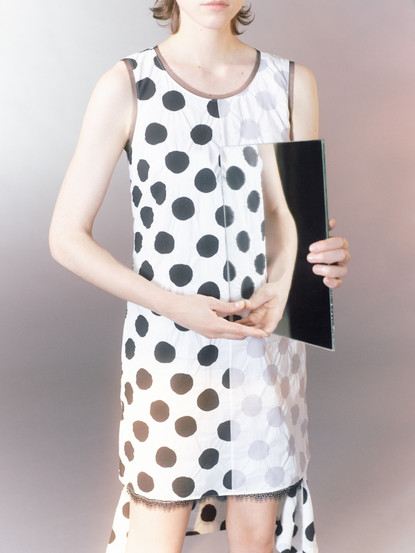 The season’s palette of blacks and whites with touches of pale grey and orange create simple, graphic and distinctive looks . Spots are a central motif, translated into prints and embroideries and in several shapes and textures: the seersucker spot; the felt spot and this season’s exclusive ikkat spot cut in a range of loungewear trousers, shorts, over shirts and kaftan dresses.