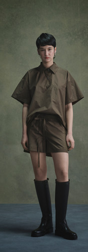 Dominated by Indigo, Khaki and Black, subtle hints of Milk, Caramel, Rose and Lavender soften the collection palette. Proportions are roomy and looks are layered as elements of masculinity and femininity run through the collection.
