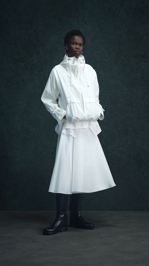 Generously cut coats emphasizing comfort and warmth are cocooned over faux fur knee length shorts. Traditional men’s shirting fabrics are cut into dresses while traditional dress fabrics are cut into shirts. An element of structure takes form of full-circle skirts, funnel neck jackets and sharp tailoring.