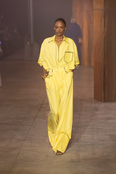 The season draws upon a pantheon of materiality: tiger print suiting in silk velvet, double-breasted tailoring in summer wools, and shantung silk pyjamas celebrate a soignée femininity in dialogue with a relaxed masculine attitude. Crafted in Villaseñor’s hometown of Los Angeles, engineered denim meets myriad expressions of BALLY leather craftsmanship, from butter-soft suede to polished calfskin, stretch nappa, and opulent metallics. Heirloom wardrobe pieces emerge in unexpected colors and combinations, from classic aviator jackets to louche tailored suits, trench coats, and safari-inspired separates.